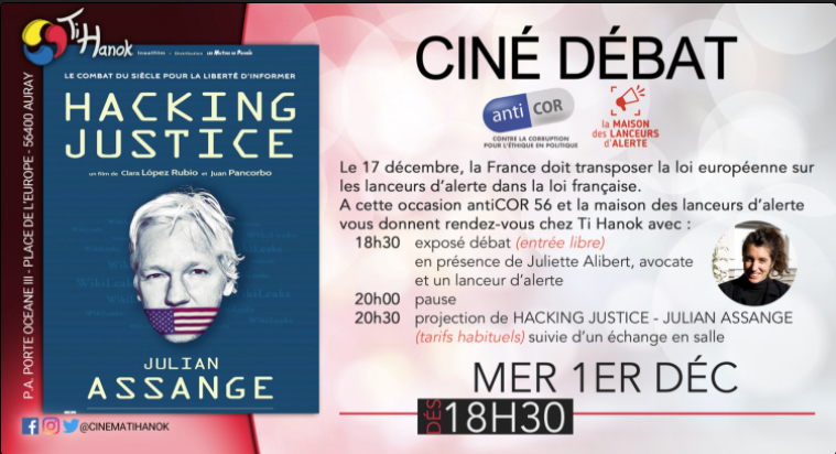 Le 17 décembre, la France doit transposer la loi européenne sur les lanceurs d’alerte dans la loi française. À cette occasion, antiCOR 56 et la Maison des lanceurs d’alerte organisent une soirée au cinéma Ti Hanok d’Auray.