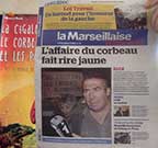 La Marseillaise du 7 et 8/1/2017 (en Une) : L’affaire du corbeau fait rire jaune par Catherine Vingtrinier