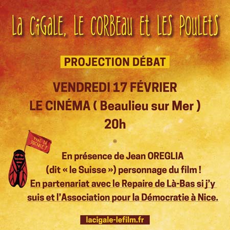 Projection-débat à 20h au cinéma à BEAULIEU SUR MER en présence de Jean Oréglia (dit "le Suisse") personnage du film ! En partenariat avec le Repaire de Là-Bas si j’y suis et l’Association pour la Démocratie à Nice.