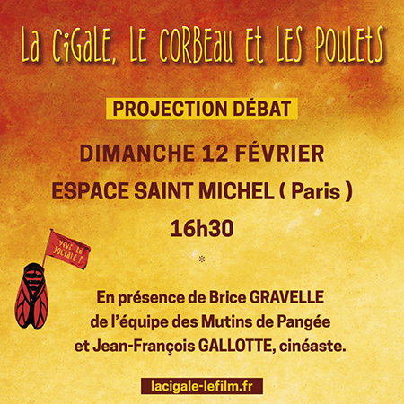 Projection-débat à 16h30 au cinéma Espace St Michel à PARIS avec Jean-François Gallotte (comédien) et Brice Ravel (de l’équipe de Production les Mutins de Pangée)