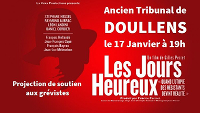 19h : Projection du film Les jours heureux de Gilles Perret, organisée par les gilets jaunes de Doullens avec l’appui de la CGT locale dans l’ancien tribunal de Doullens.