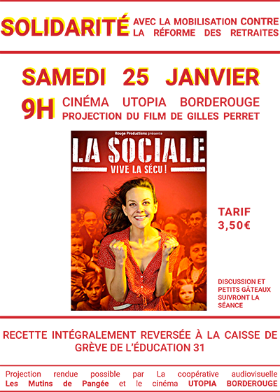 9h : Projection du film La Sociale de Gilles Perret au cinéma Utopia Borderouge à Toulouse, organisée par l’AG éducation Nord de Toulouse.