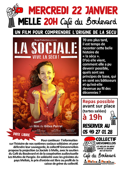 20h : Projection du film La Sociale de Gilles Perret, organisée par le collectif Grèvenmellois au Café du Boulevard à Melle (Deux-Sèvres).